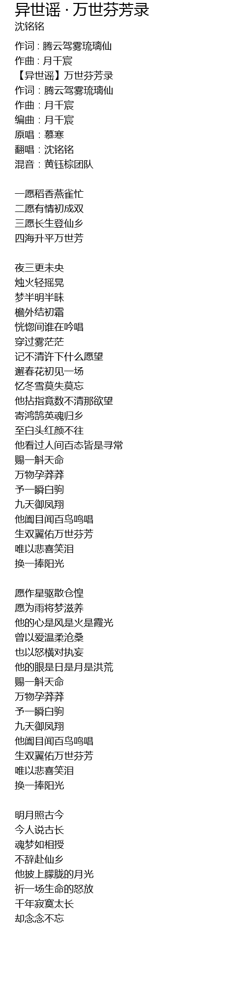 | Song | 异世谣 · 万世芬芳录 |