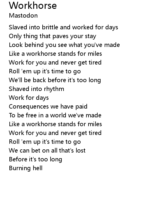 | Like a workhorse stands for miles | |