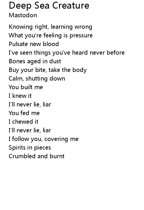 | Song | Deep Sea Creature |