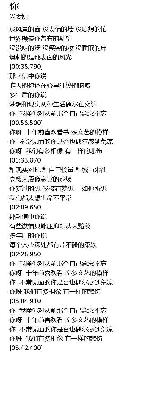 | [03:06.710] | 你 我懂你对从前那个自己念念不忘 |