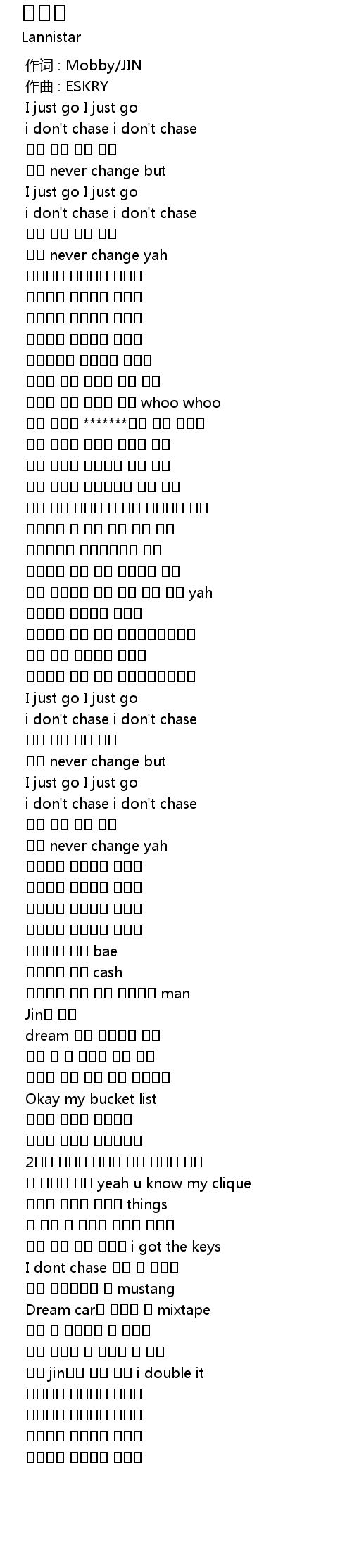 | [00:00.000] | 作词 : Mobby/JIN |