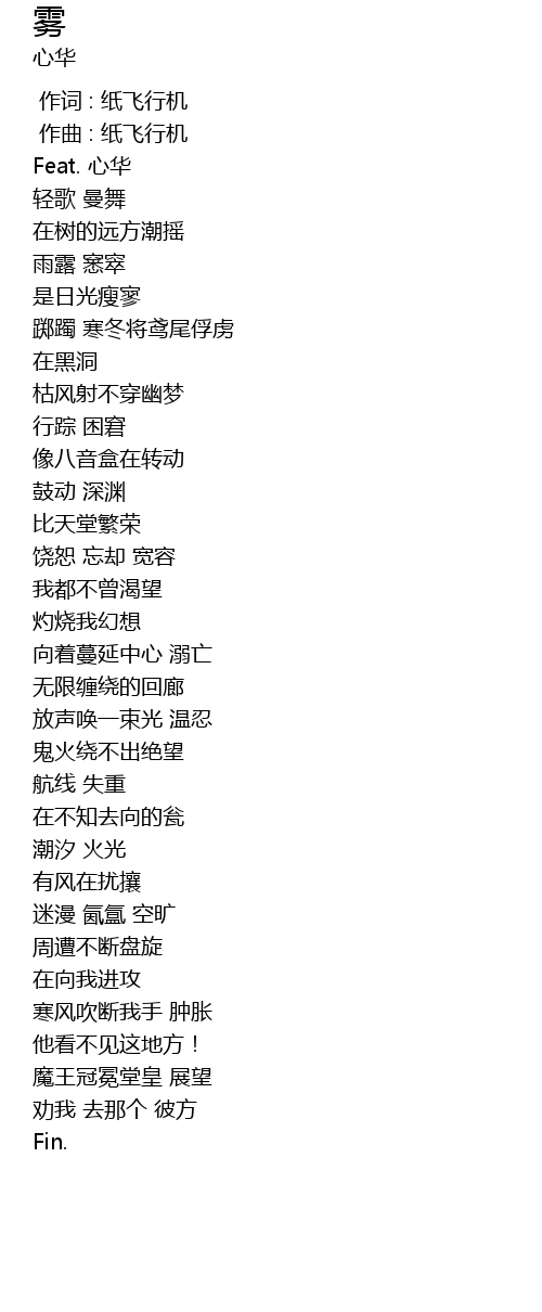 | [00:01.000] | 作曲 : 纸飞行机 |