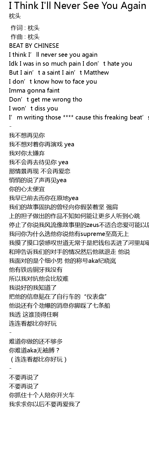 | [00:34.316] | 我不想再见你 |