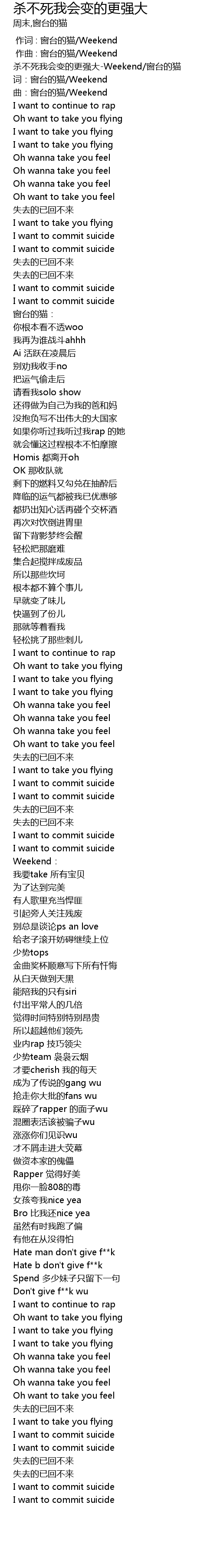 | [00:00.577] | shā bù sǐ wǒ huì biàn de gèng qiáng dà Weekend chuāng tái de māo |