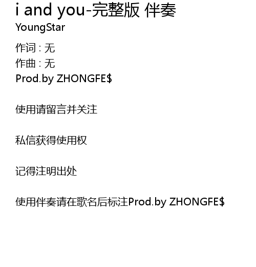 使用伴奏请在歌名后标注Prod.by ZHONGFE$
