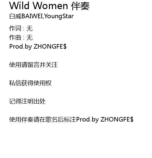 | 使用伴奏请在歌名后标注Prod.by ZHONGFE$ |