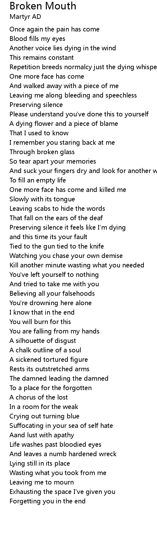 Repetition breeds normalcy just the dying whisper of an infected fool