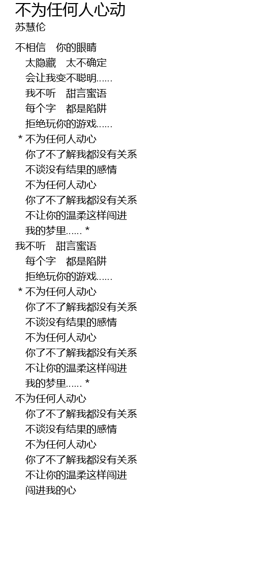 | [01:15.34] | bù wéi rèn hé rén dòng xīn |