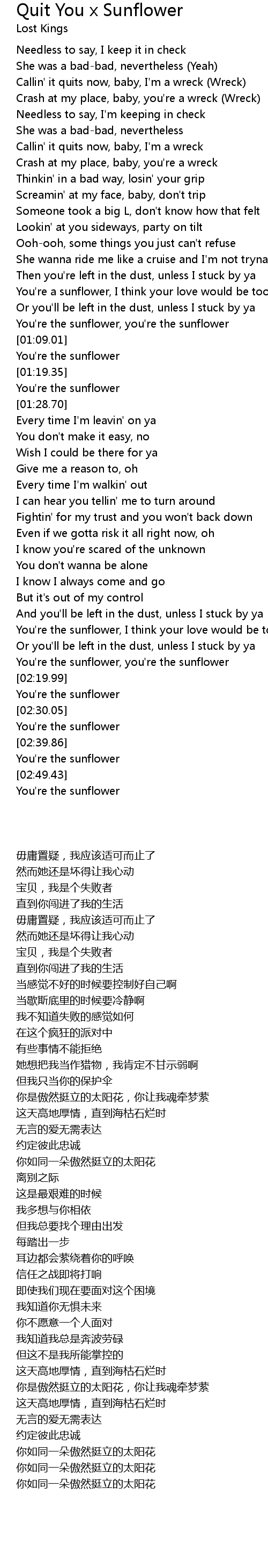 You're the sunflower |