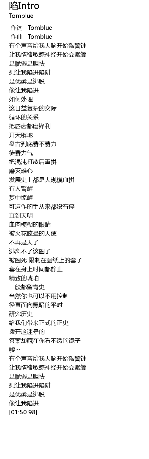 | [00:01.000] | zuò qǔ : Tomblue |