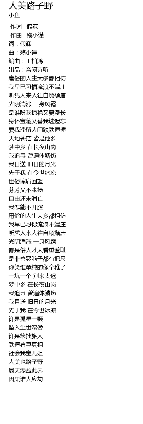 | [02:41.669] | 人美也路子野 |