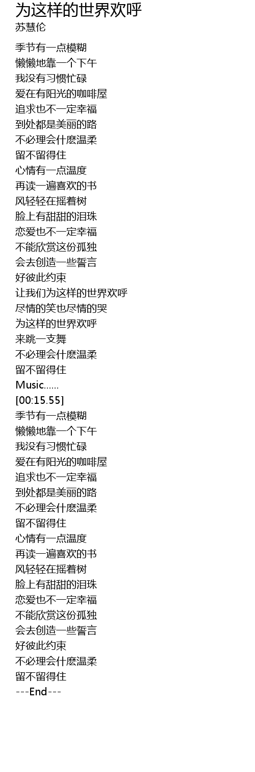 | [01:55.37] | wèi zhè yàng de shì jiè huān hū |