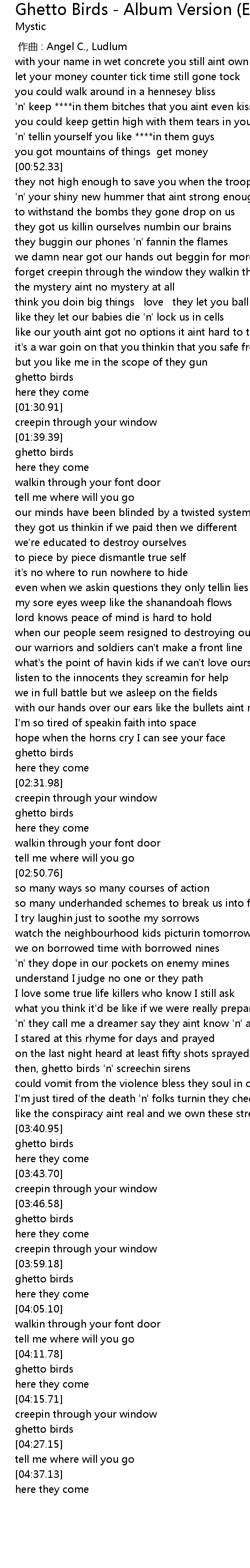 | Song | Ghetto Birds - Album Version (Explicit) |