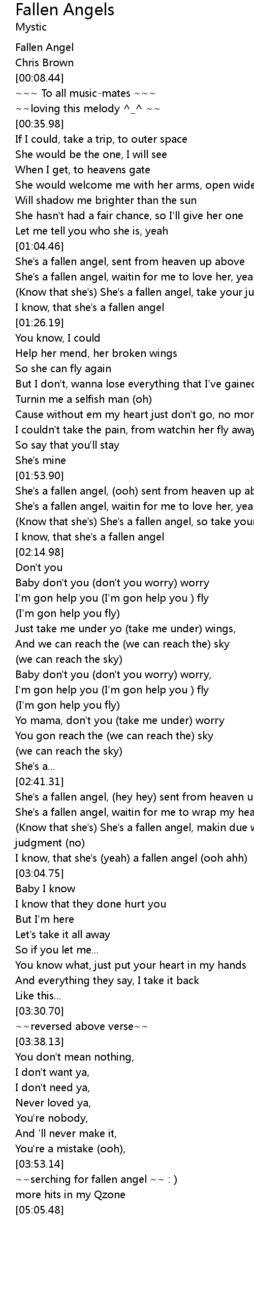 [02:48.70] She's a fallen angel, waitin for me to wrap my heart around her, know