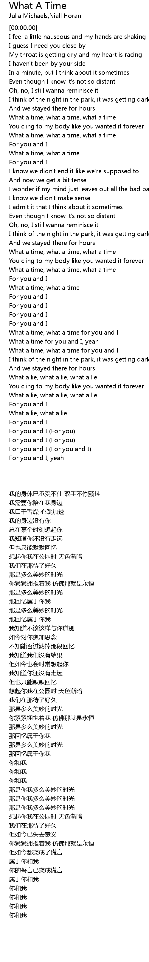 What a time, what a time for you and I |