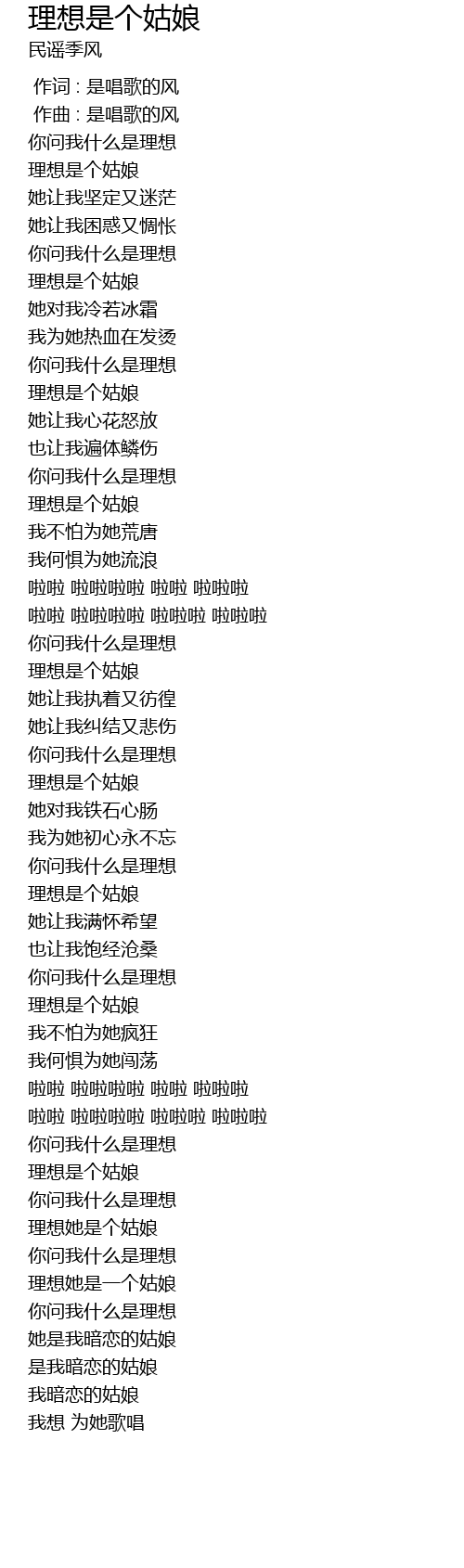 | [03:51.171] | 理想是个姑娘 |
