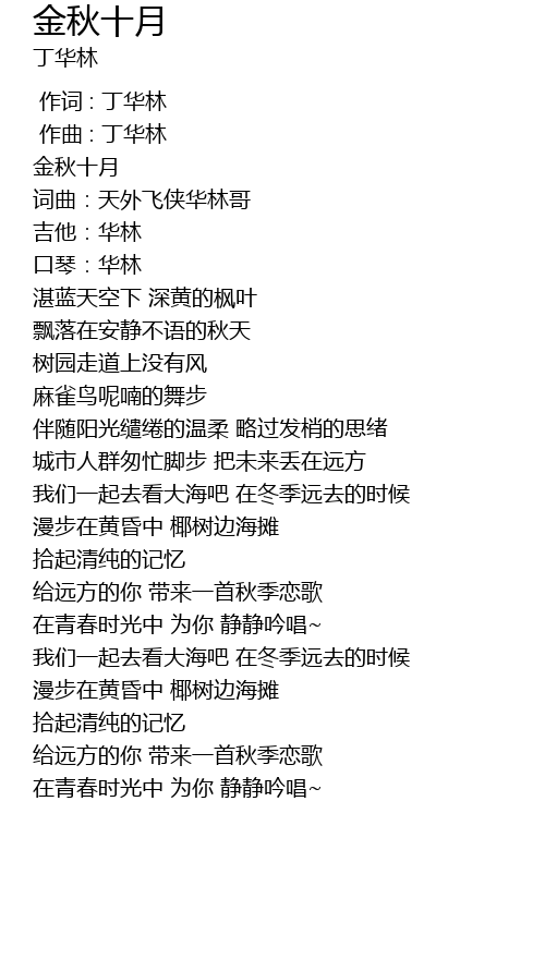 | [00:24.683] | 湛蓝天空下 深黄的枫叶 |