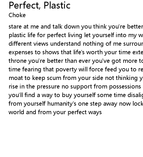| stare at me and talk down you think you're better and it shows built yourself a plastic life for perfect living let yourself into my world then condemn my different views understand nothing of me surrounded by expenses for nothing expenses to shows that life's worth your time exterior reaffirm your perfect throne you're better than ever you've got more to show that life's worth your time fearing that poverty will force feed you to realize building a concrete moat to keep scum from your side not thinking you're so wrong misery there's a rise in the pressure no support from possessions now convinced with your credit you'll find a way to buy yourself some time disaligned in need of protection from yourself humanity's one step away now locked from your show home perfect world and from your perfect ways |