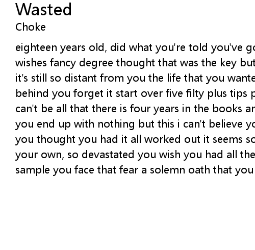 eighteen years old, did what you're told you've gone on with all your parents wishes fancy degree thought that was the key but now you're stuck washing dishes it's still so distant from you the life that you wanted your dreams are lost behind you forget it start over five filty plus tips putting up with shit this can't be all that there is four years in the books and all your time it took and you end up with nothing but this i can't believe you now all that time wasted you thought you had it all worked out it seems so simple now that you are on your own, so devastated you wish you had all the time back now that you've had a sample you face that fear a solemn oath that you were forced into |