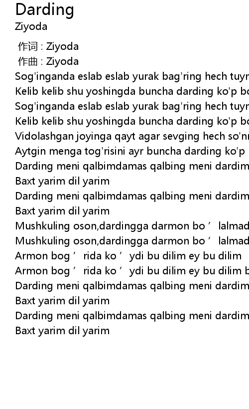 | [00:00.000] | 作词 : Ziyoda |