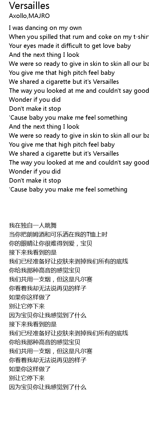 | [01:03.959] | We shared a cigarette but it's Versailles |