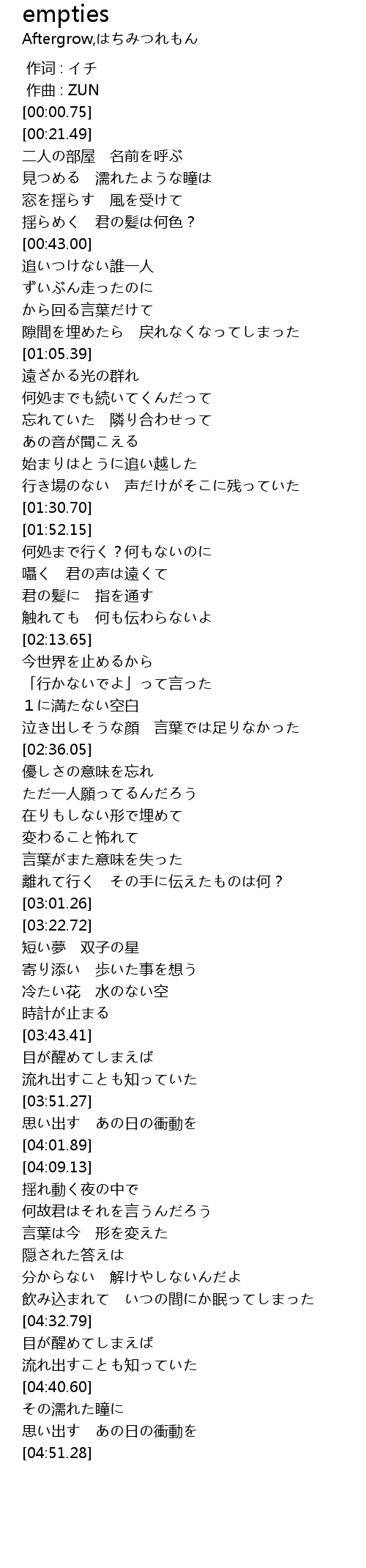 | [00:58.86] | 隙間を埋めたら 戻れなくなってしまった |