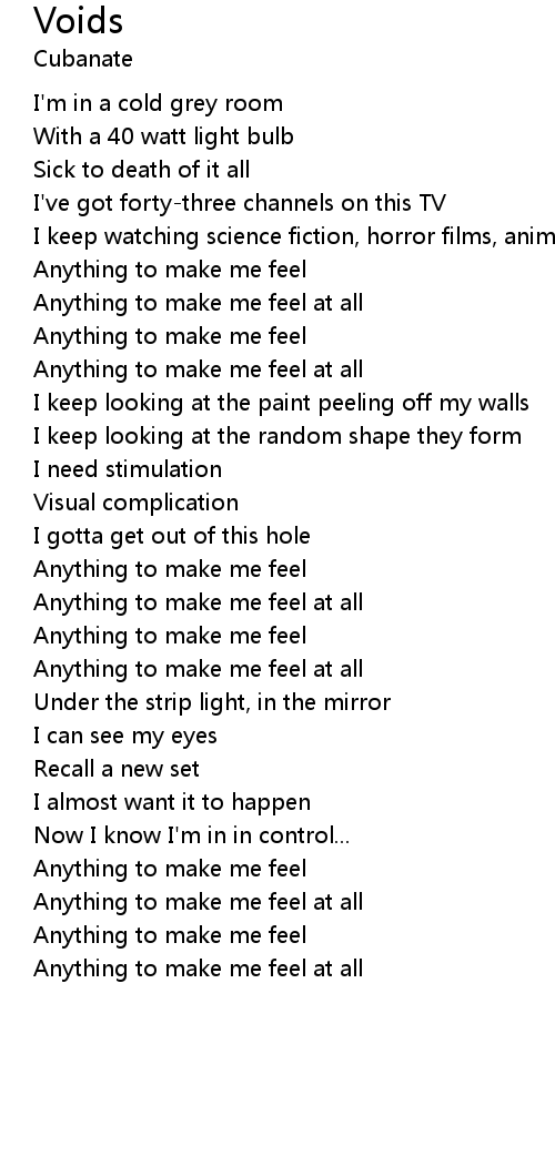 Anything to make me feel at all |