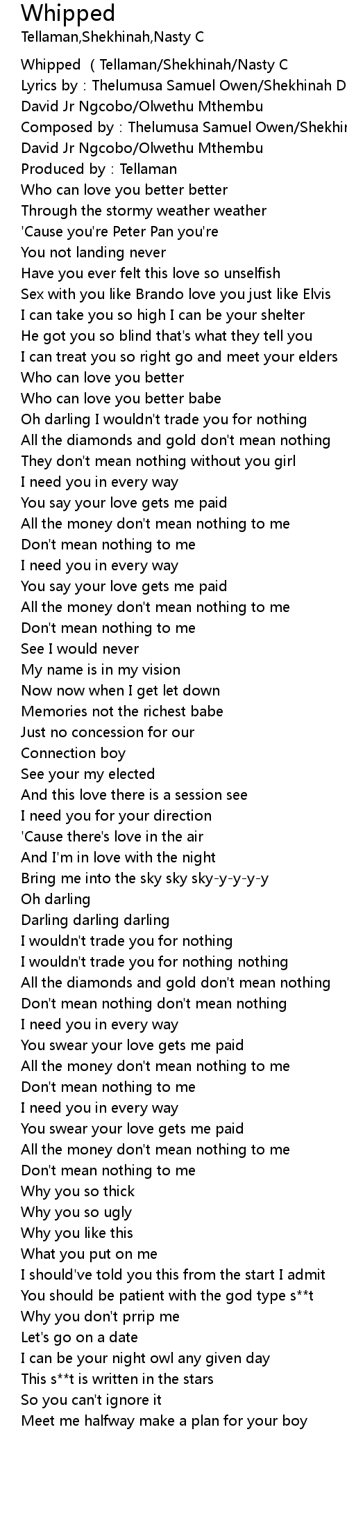 | [00:00.312] | Whipped Tellaman Shekhinah Nasty C |