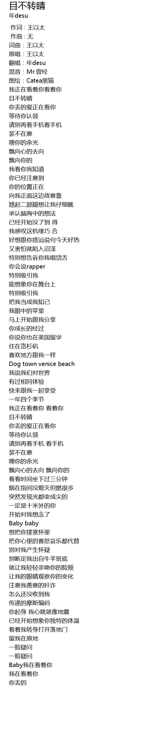 | [02:26.498] | Baby wǒ zài kàn zhe nǐ |