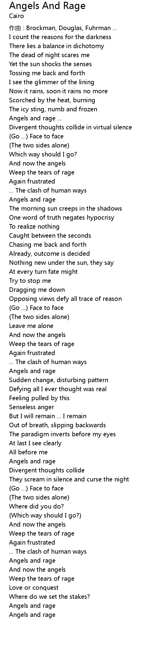 | Song | Angels And Rage |