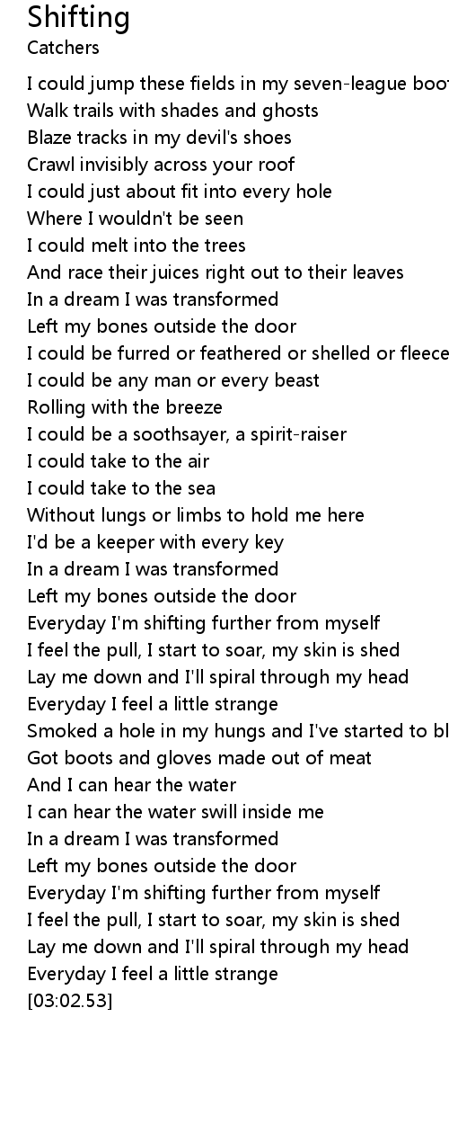 | [01:28.02] | Everyday I'm shifting further from myself |