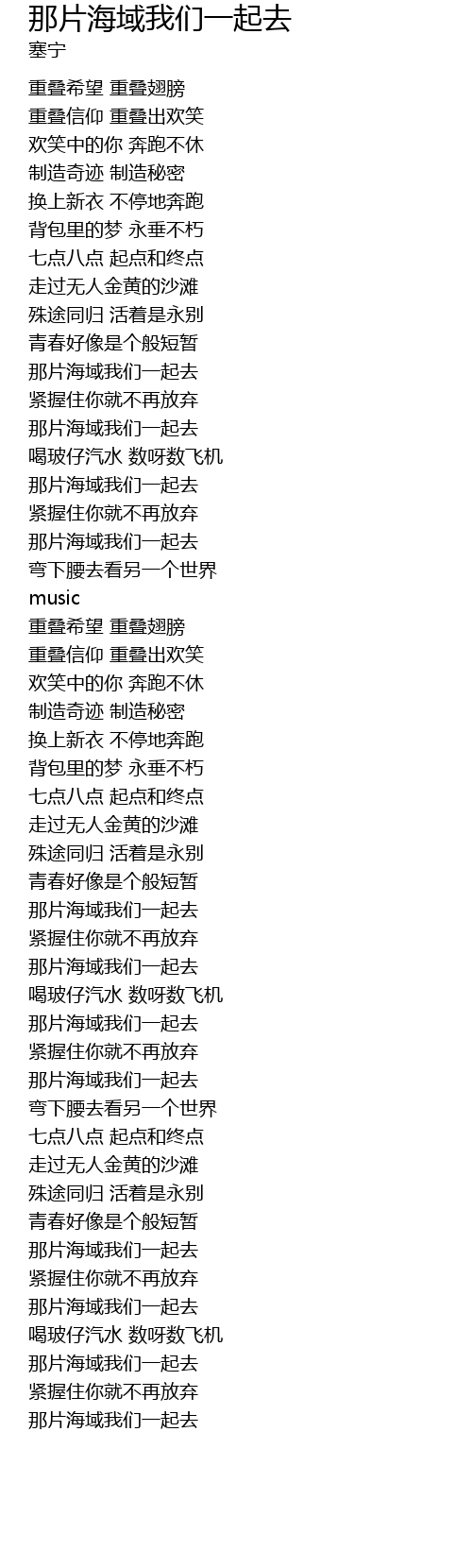| [01:35.63] | nà piàn hǎi yù wǒ men yì qǐ qù |