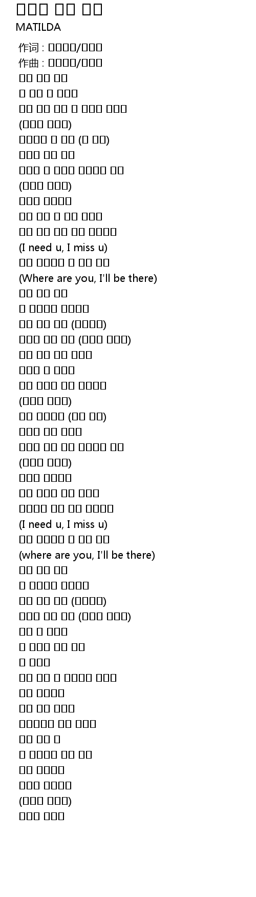 | [02:10.031] | (I need u, I miss u) |