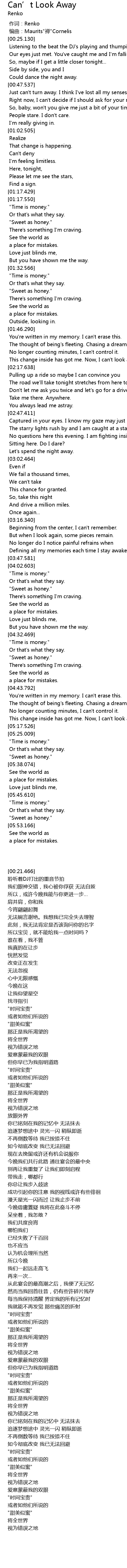 | [00:47.660] | Just can' t turn away. I think I' ve lost all my senses. |