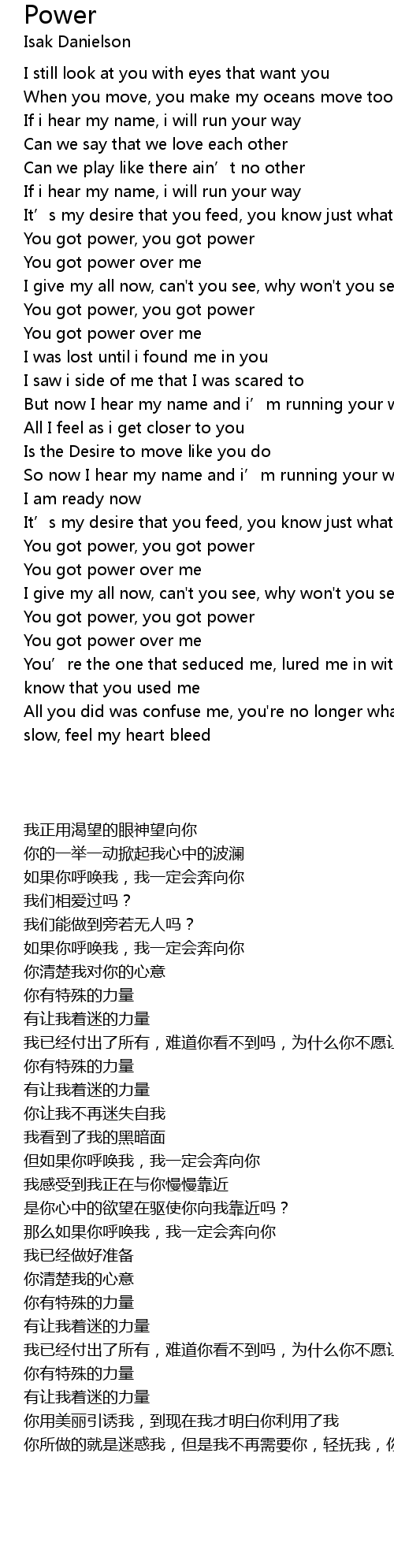 | Song | Power |