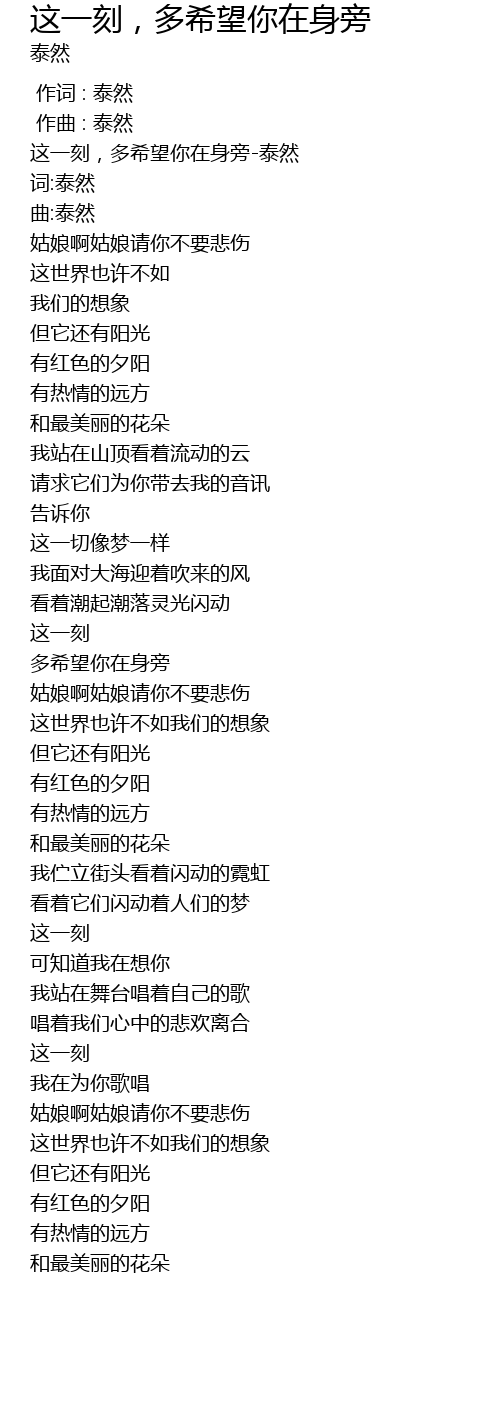 | [00:00.660] | 这一刻,多希望你在身旁-泰然 |