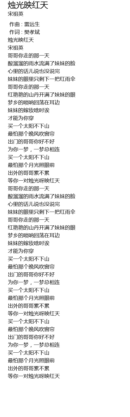 | [01:50.47] | děng nǐ yī duì zhú guāng ya yìng hóng tiān |