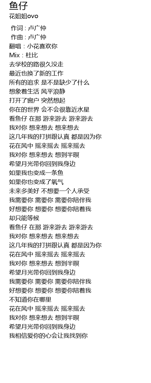 | [02:44.890] | 看鱼仔 在那 游来游去 游来游去 |