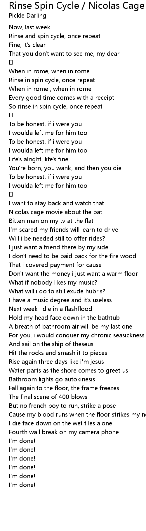 | [01:11.383] | So rinse in spin cycle, once repeat |