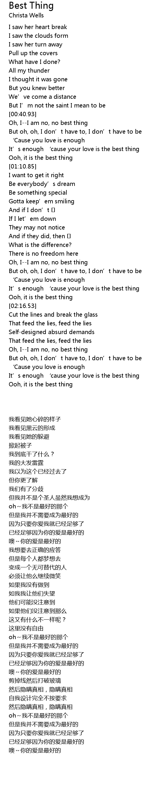 | [00:42.89] | Oh, I--I am no, no best thing |