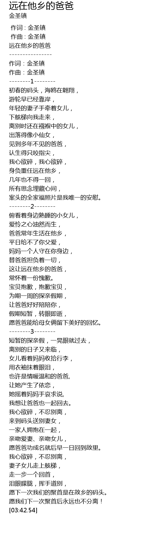 | [03:06.73] | 愿爸爸功成名就后早一日回到故里。 |