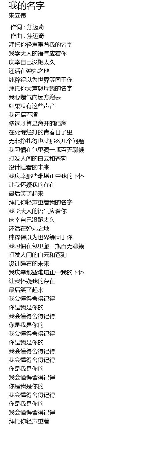 | [00:00.000] | 作词 : 焦迈奇 |