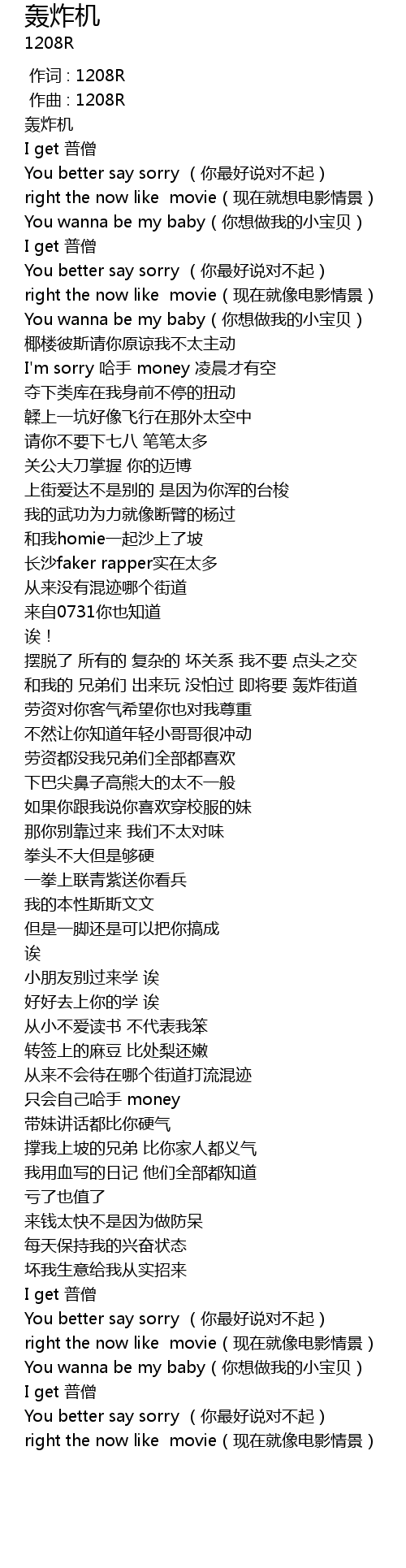 | [00:20.635] | You better say sorry nǐ zuì hǎo shuō duì bù qǐ |