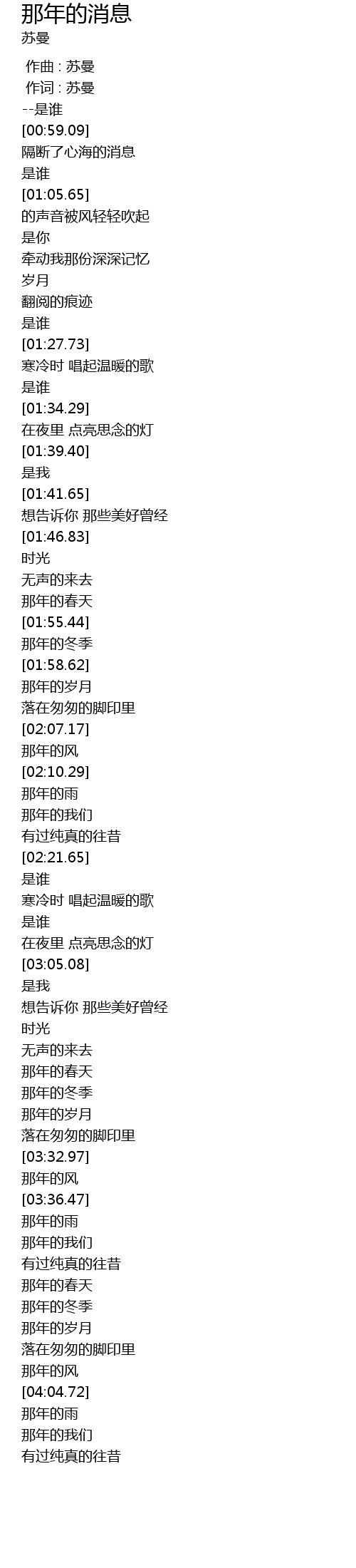 | [00:59.78] | ge duan le xin hai de xiao xi |