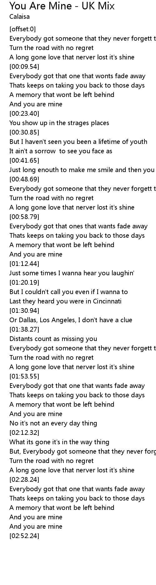 | [00:42.92] | Just long enouth to make me smile and then you disapear |