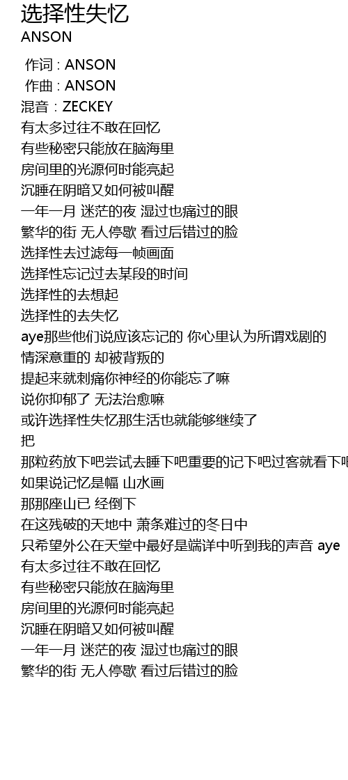 | [00:00.000] | 作词 : ANSON |