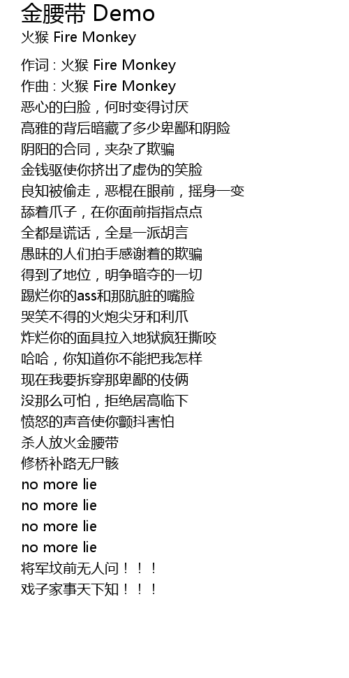 | 作词 : 火猴 Fire Monkey | |