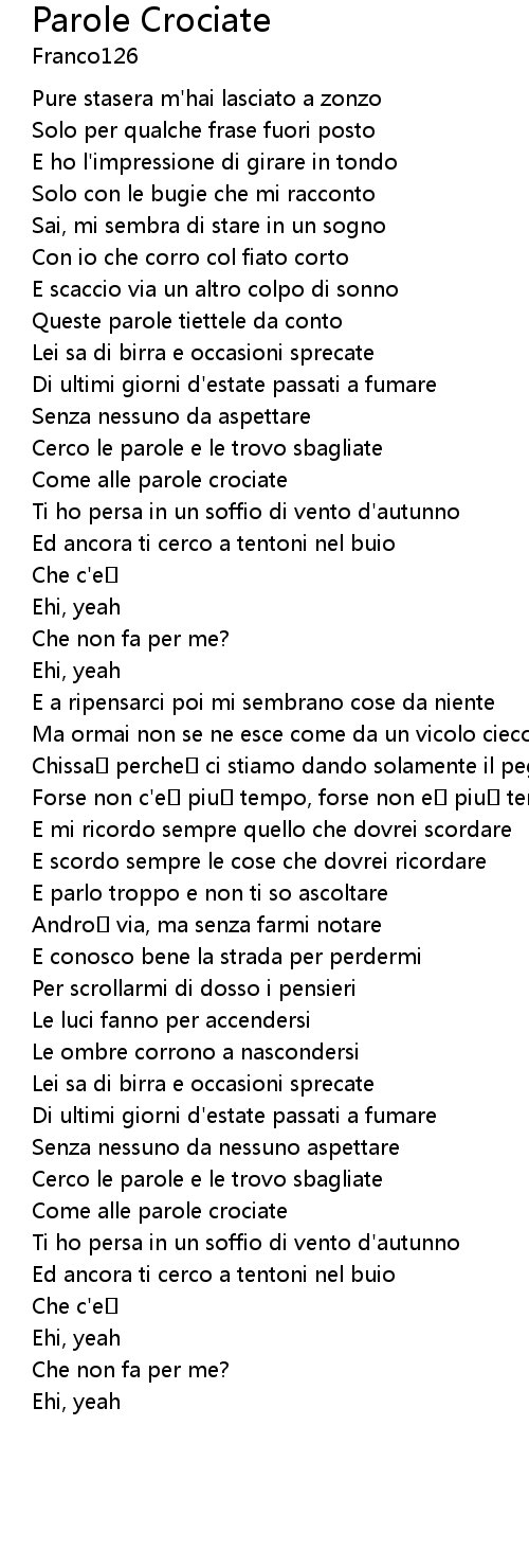 | [01:46.884] | E parlo troppo e non ti so ascoltare |