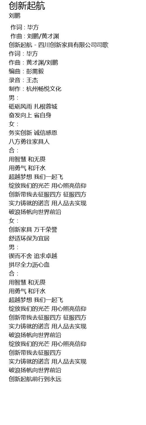 | [00:01.193] | 创新起航 - 四川创新家具有限公司司歌 |
