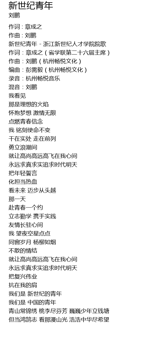 | 新世纪青年 - 浙江新世纪人才学院院歌 | |
